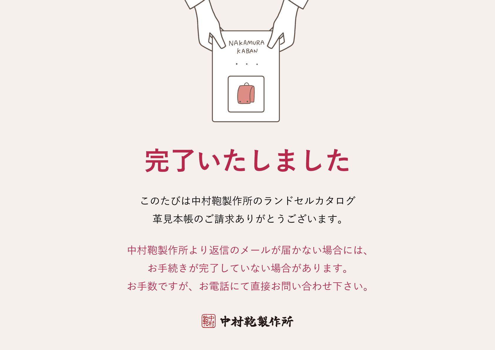//TOPテスト用 完了画面 | 中村鞄製作所