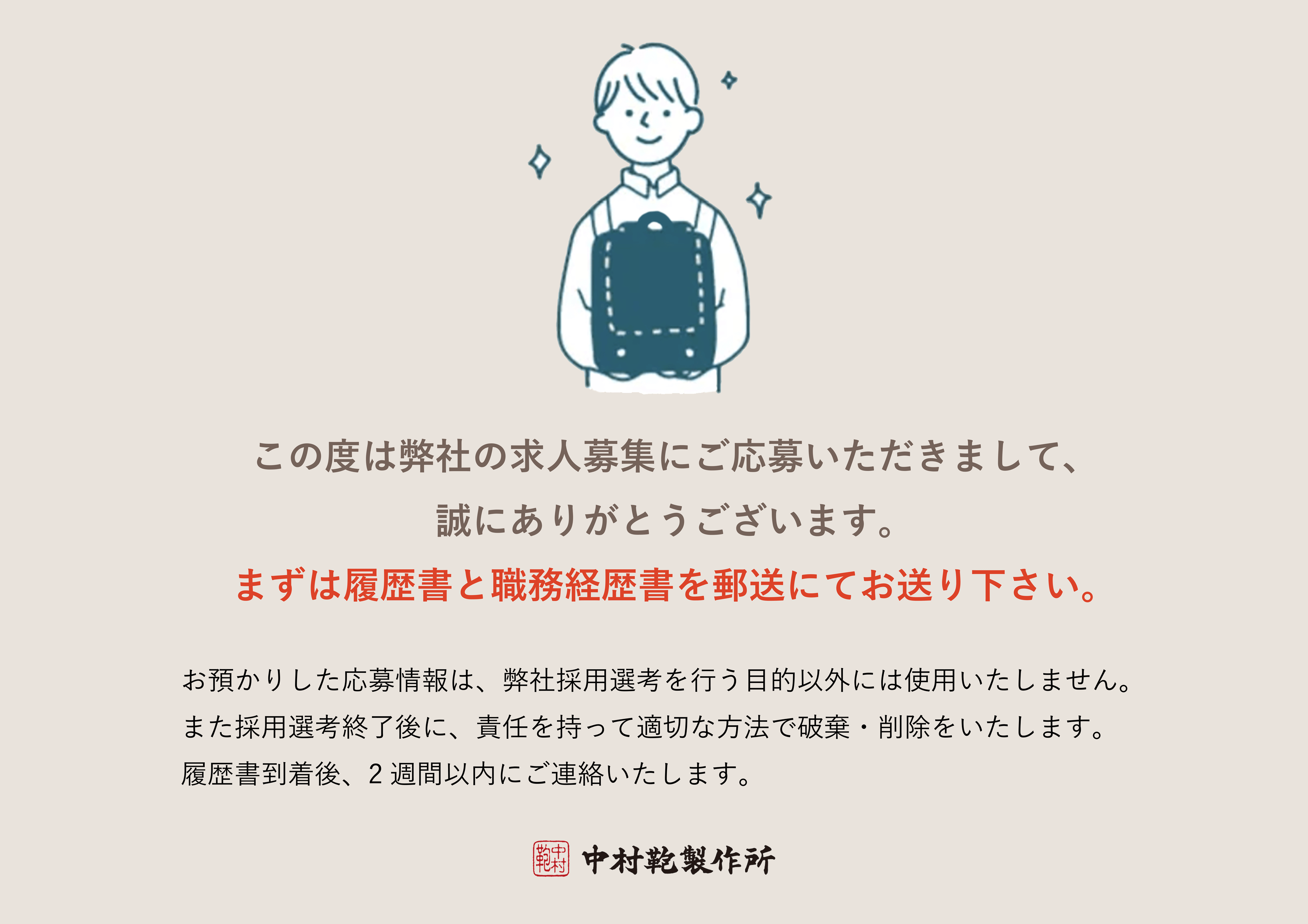 採用フォーム入力完了 | 中村鞄製作所